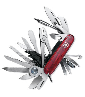 Швейцарский армейский нож SWISS CHAMP XLT 91мм / 8 слоев / 49 функций / красные полупрозрачные накладки / крестовая отвертка / пила по дереву / пила по металлу / плоскогубцы / лупа / ножницы