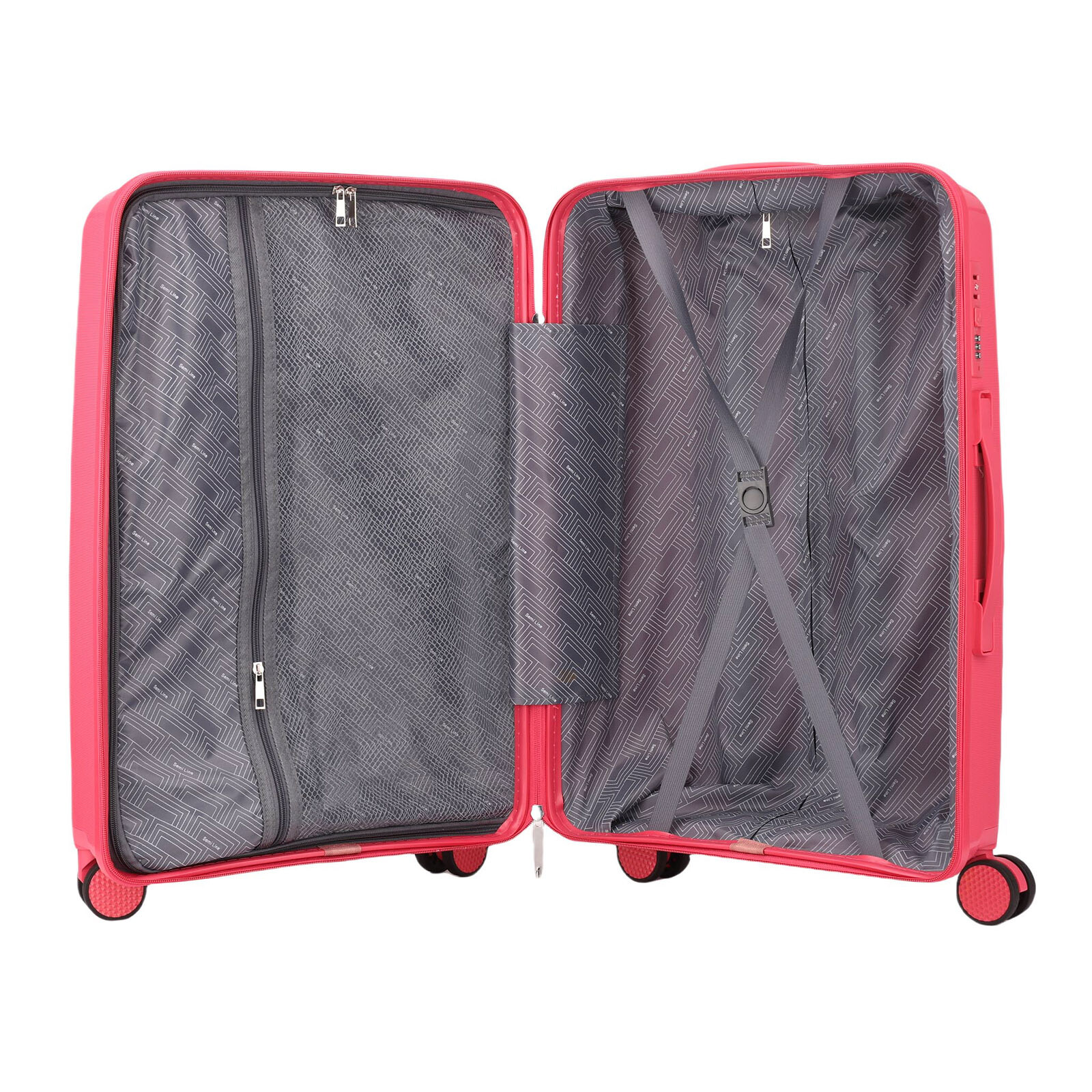 | Дополнительные характеристики | Кодовый замок; Прочный полипропиленовый корпус; Выдвижная телескопическая, алюминиевая ручка фиксируется в двух положениях; Ручки в верхней и боковой части чемодана для транспортировки в вертикальном и горизонтальном положении; Текстильная перегородка на молнии с карманом на молнии; Эластичные компрессионные ремни на фастексе предназначены для фиксации |