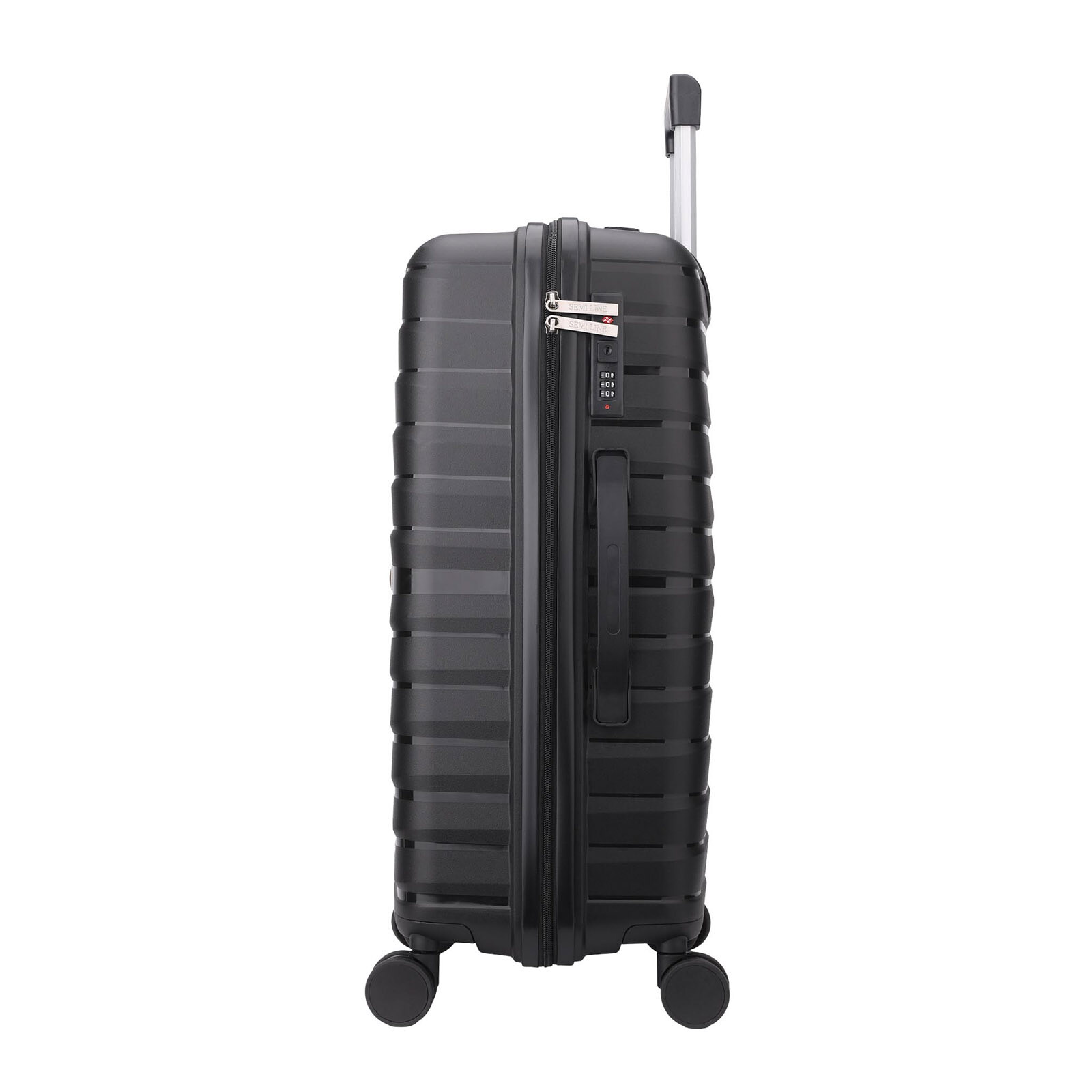 Чемодан Semi Line T5796 изготовлен из полипропилена - на сегодняшний день наиболее оптимального материала с точки зрения сочетания прочности и веса. При случайных ударах корпус чемодана лишь прогибается, но принимает первоначальную форму после снятия нагрузки. Чемодан оснащен легкой алюминиевой телескопической ручкой. «Утопленный» кодовый замок не выступает за плоскость корпуса, поэтому его практически невозможно повредить, а он, в свою очередь, призван защитить содержимое вашего чемодана. Чередование матовых и глянцевых полос создает непревзойденный визуальный эффект.