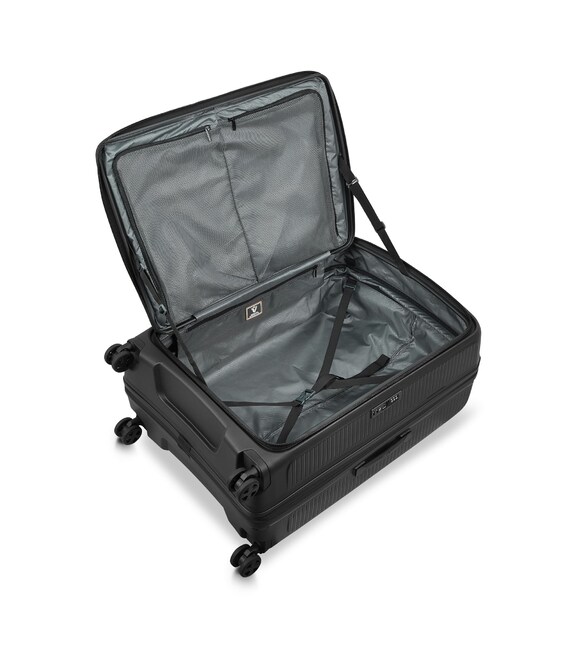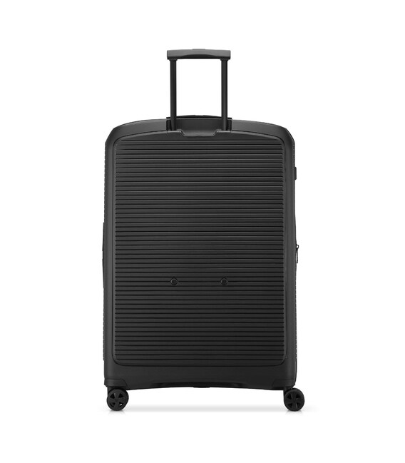 Чемодан изготовлен из полипропилена на 100% переработанного материала, который предлагает: максимальную ударопрочность, чрезвычайную прочность, оптимальную лёгкость, термостойкость. Оснащена 4 спаренными и маневренными колесами. Для удобства перемещения предусмотрена гибкая, подъемная пластиковая ручка на верхней и боковой панелях, а также телескопическая ручка. Безопасность и сохранность багажа обеспечивает встроенный кодовый замок с системой TSA. Среди наиболее ценных особенностей – инновационная система FLAT TOP: открывающаяся крышка на 90° вместо центрального отверстия. Дизайн разработан для уменьшения объема и облегчения доступа к содержимому.