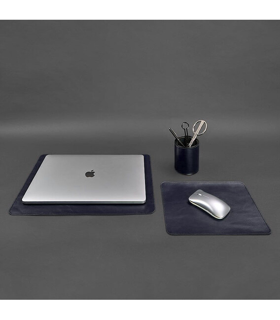 Набор для рабочего стола из натуральной кожи 1.0 темно-синий краст