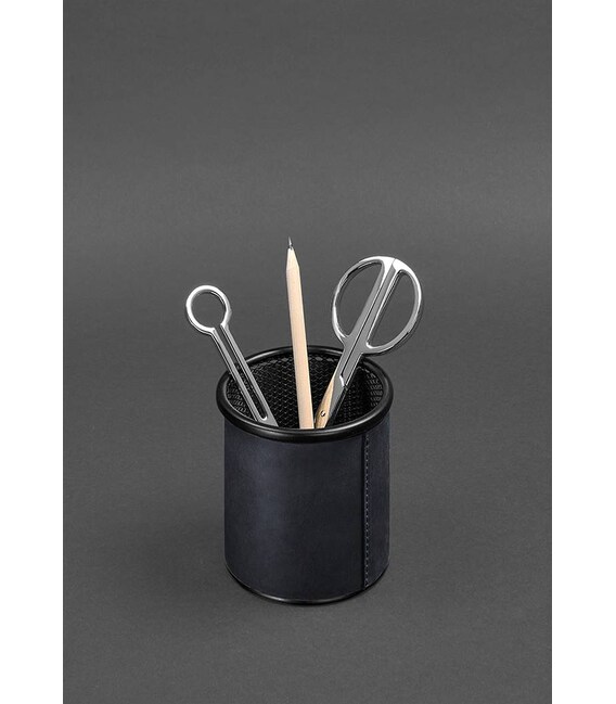 Описание Стакан для ручек в кожаном чехле синий Crazy Horse
