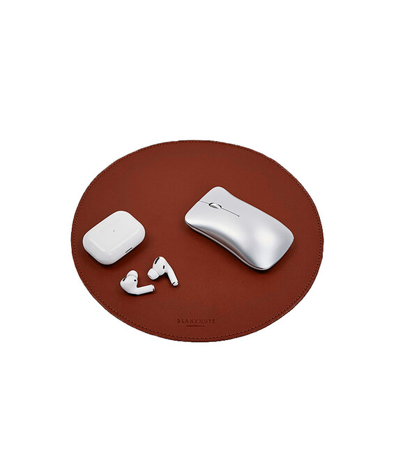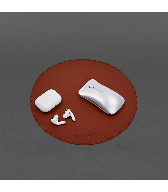Описание Круглый коврик для мышки из натуральной кожи светло-коричневый краст
