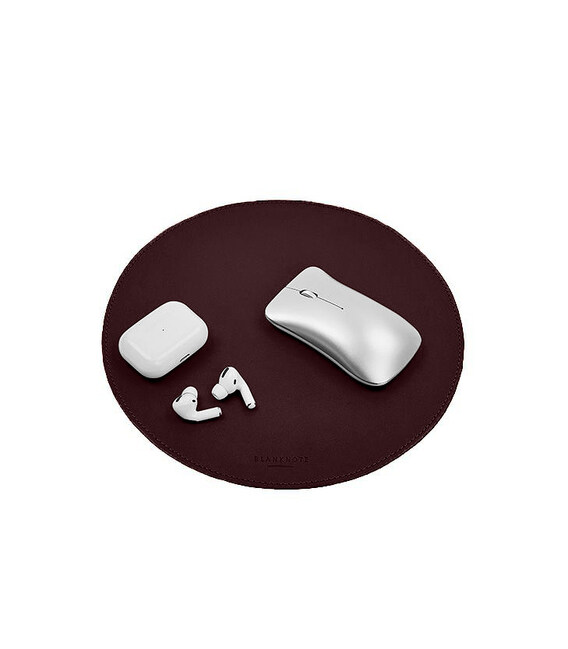 Описание Круглый коврик для мышки из натуральной кожи бордовый краст