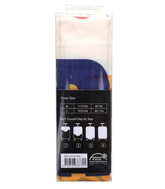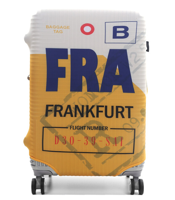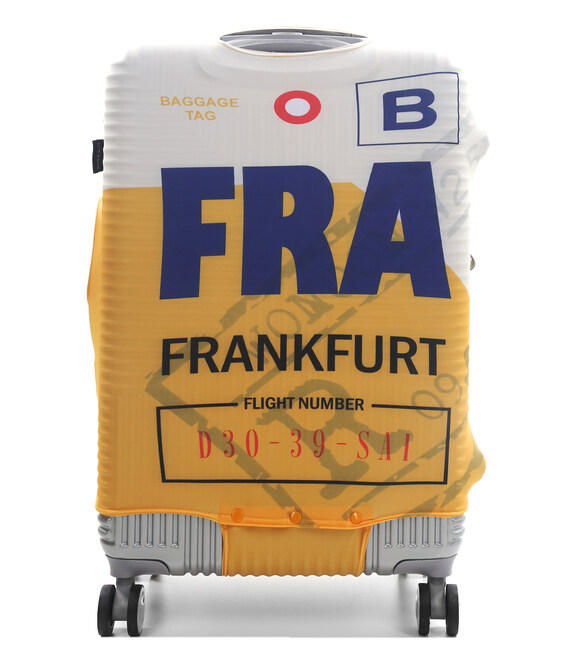 Эта обложка Airtex To Frankfurt включает в себя принты на тему аэропорта Франкфурта. Его эластичное покрытие также позволяет адаптировать его к чемоданам разного размера с максимальной высотой 65 см. Он крепится с помощью прижимных зажимов, расположенных снизу, и имеет отверстия вверху и по бокам, чтобы обеспечить легкий доступ к тележке и ручкам для переноски.