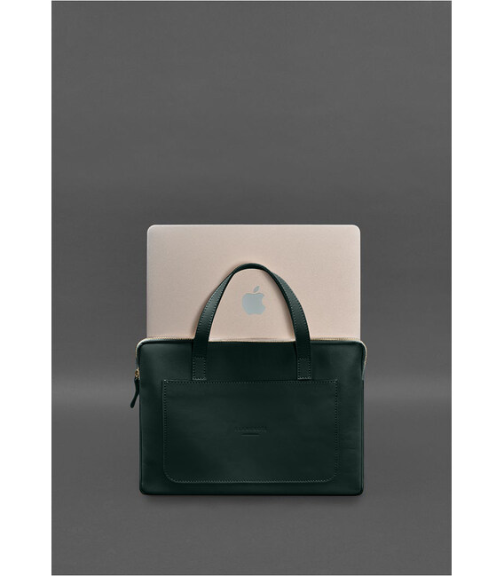 Кожаный чехол (сумка) с ручками для ноутбука 13 дюйм Зеленый