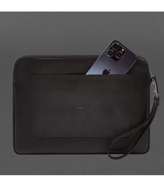 Кожаный чехол для ноутбука на молнии с карманом и петлей на руку Черный