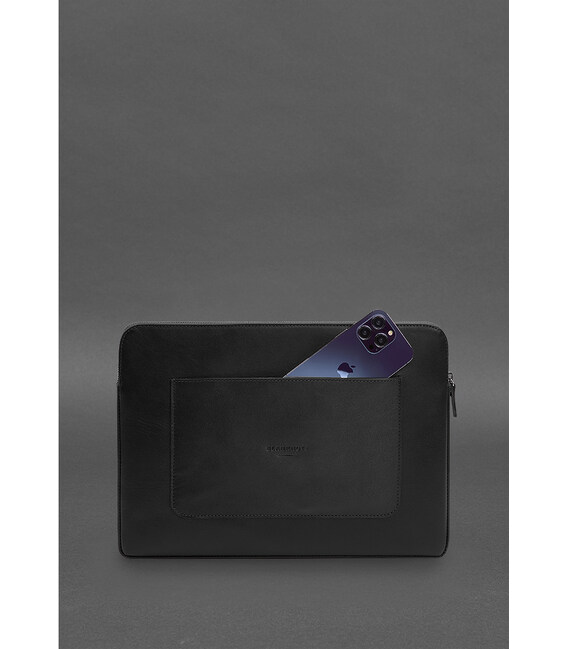Кожаный чехол для ноутбука на молнии с хлястиком и карманом Черный