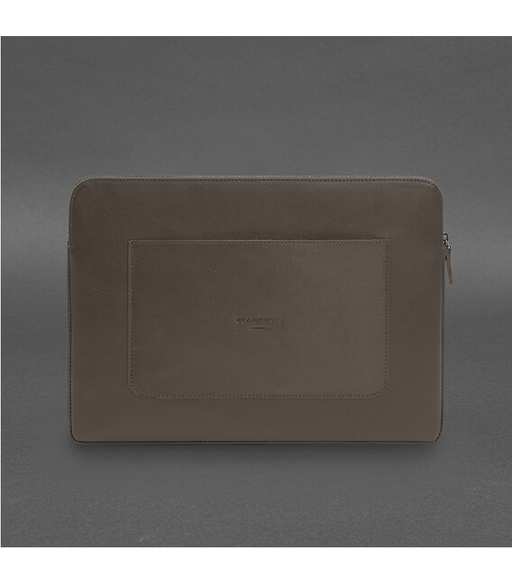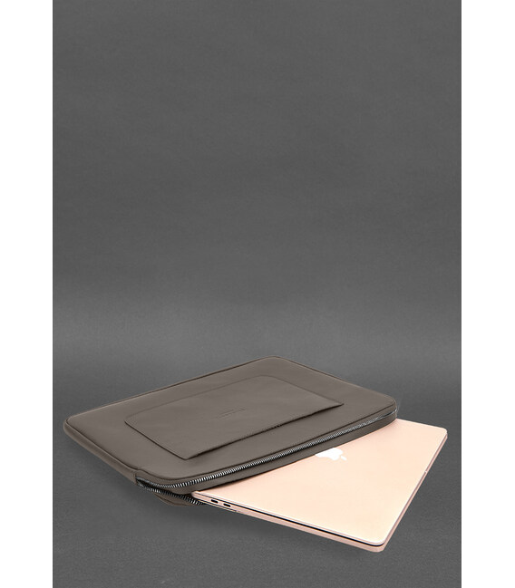 Описание Кожаный чехол для ноутбука на молнии с хлястиком и карманом Темно-бежевый