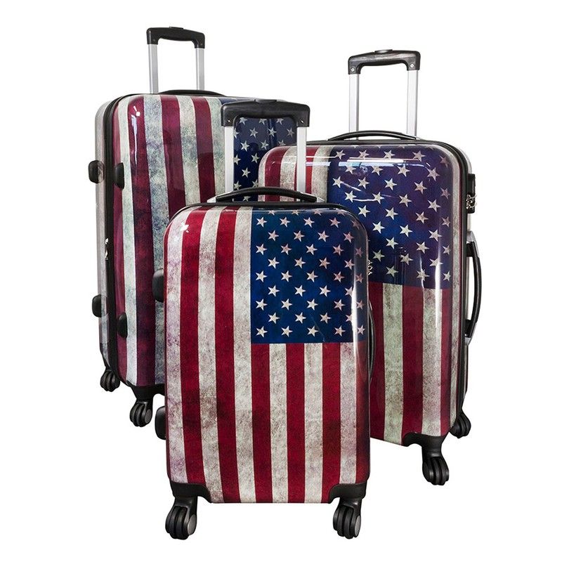 Принт флага США в ретро стиле. Прочные корпуса из поликарбоната и интегрированный кодовый замок защищают вещи от несанкционированного доступа и внешнего воздействия.