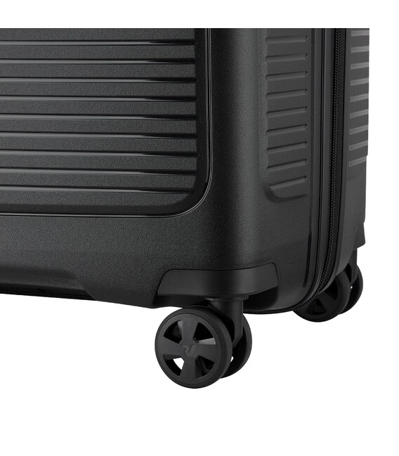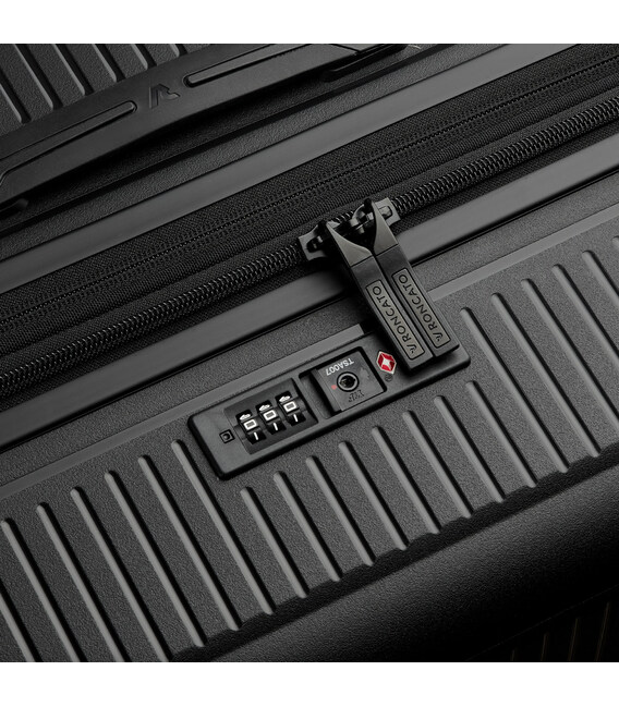 Чемодан изготовлен из полипропилена на 100% переработанного материала, который предлагает: максимальную ударопрочность, чрезвычайную прочность, оптимальную лёгкость, термостойкость. Оснащена 4 спаренными и маневренными колесами. Для удобства перемещения предусмотрена гибкая, подъемная пластиковая ручка на верхней и боковой панелях, а также телескопическая ручка. Безопасность и сохранность багажа обеспечивает встроенный кодовый замок с системой TSA. Изделие состоит из двух больших отделений, оснащенных разделителями и эластичными прижимными ремнями. Также имеет расширение для увеличения пространства для вещей.