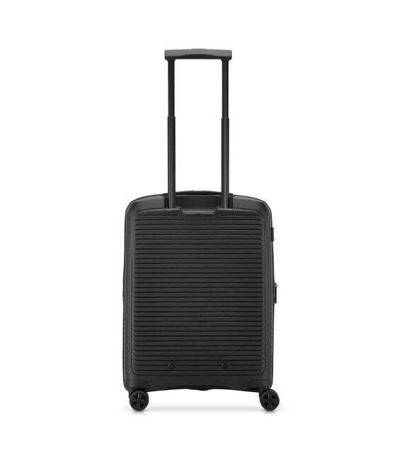 Чемодан изготовлен из полипропилена на 100% переработанного материала, который предлагает: максимальную ударопрочность, чрезвычайную прочность, оптимальную лёгкость, термостойкость. Оснащена 4 спаренными и маневренными колесами. Для удобства перемещения предусмотрена гибкая, подъемная пластиковая ручка на верхней и боковой панелях, а также телескопическая ручка. Безопасность и сохранность багажа обеспечивает встроенный кодовый замок с системой TSA. Среди наиболее ценных особенностей – инновационная система FLAT TOP: открывающаяся крышка на 90° вместо центрального отверстия. Дизайн разработан для уменьшения объема и облегчения доступа к содержимому.