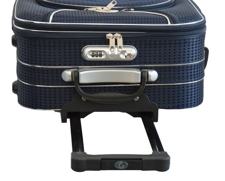 Чемодан сделан из материала типа Codura, водонепроницаемый, прочный и долговечный материал устойчив к ударам или давлению. Жесткие стенки и дно придают ему стабильную внутренность, где без проблем вы можете перевозить свой багаж. Чемодан идеально подходит для авиаперелетов, где багаж особенно уязвимым к повреждениям. Каркас, прочный и легкий. Шасси из 5 каучуковых колес. Чемодан имеет выдвижную ручку с компасом.