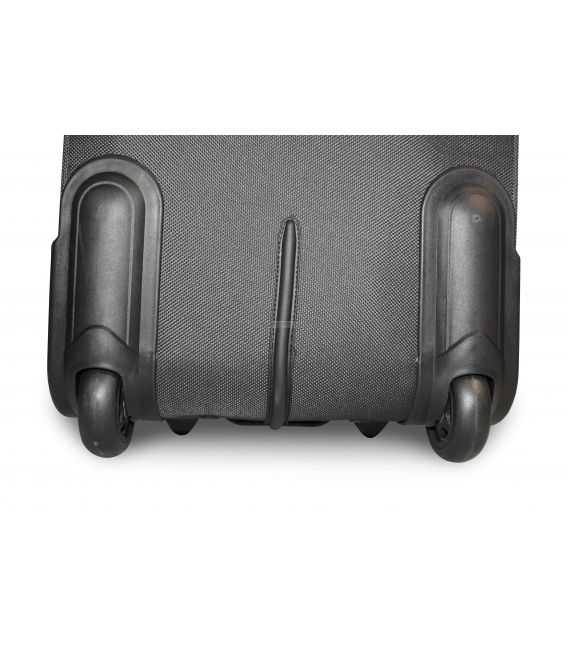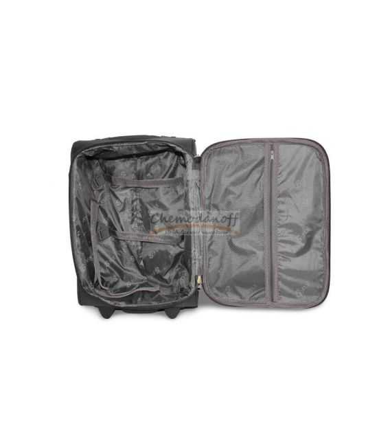 Его корпус оснащен двумя независимыми прочными полиуретановыми колесами. Это позволяет владельцу катить чемодан практически без особых усилий и не ощущать тяжести на руки. Легкому передвижению способствует и удобная телескопическая ручка (тролли-система) с возможностью фиксации в двух положениях.