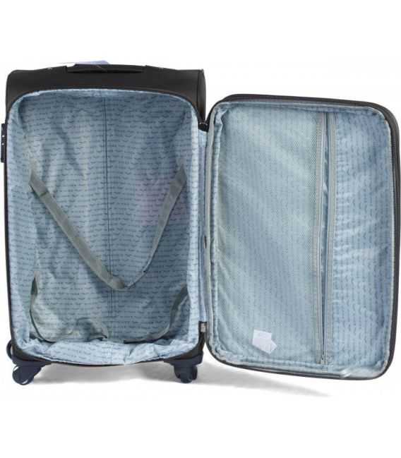 Большой ручная кладь, его корпус оснащен четырьмя независимыми прочными полиуретановыми колесами с возможностью поворота вокруг своей оси на 360 градусов. Это позволяет владельцу катить чемодан практически без особых усилий и не ощущать тяжести на руки. Легкому передвижению способствует и удобная телескопическая ручка (тролли-система) с возможностью фиксации в двух положениях.