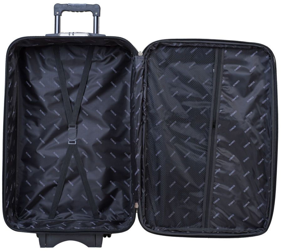 Чемодан изготовлен из прочного материала Cordura 600D устойчивого к повреждениям промокания и истирания. Корпус оснащен 5 независимыми друг от друга колесами, что исключает износ чемодана. Имеет выдвижную ручку, две удобные ручки для рук, позволяющие удобно переносить чемодан, кодовый замок.
