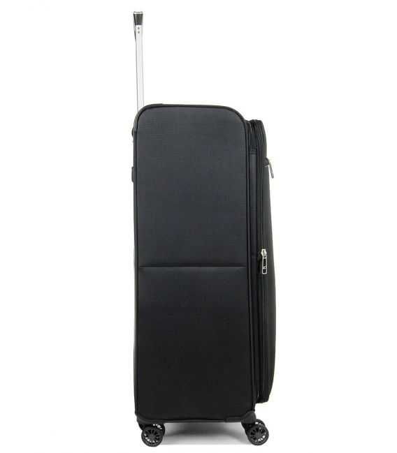 Данный чемодан изготовлен из специально разработанных легких компонентов, благодаря которым уменьшается вес чемодана, что является решением проблемы ограничения веса багажа во время авиаперелетов. Все основные элементы чемодана изготовлены из легких материалов и прочной ткани. Эта модель отличается высокой маневренностью и легкостью в управлении, благодаря четырехколесной системе (четыре колеса из прочного и бесшумного материала, вращающиеся на 360 градусов). В качестве ткани выбрали нейлон, имеющий высокую плотность (800D) и обладающий водоотталкивающими свойствами. Кроме того, этот материал легко очищается от грязи и не подвергается механической деформации. Есть расширение, которое позволит увеличить объем чемодана когда это необходимо. Каркас этого чемодана состоит из гибких полипропиленовых пластин и уплотненного дна, за счет чего, не только прекрасно держит свою форму, но и позволяют сохранять в целости все предметы находящиеся в середине. Одежда может быть аккуратно закреплена на фиксирующих ремнях. Также в середине чемодана размещен большой боковой карман-сетка, извне, для небольших вещей расположен карман в который удобно складывать все, что необходимо в дороге.