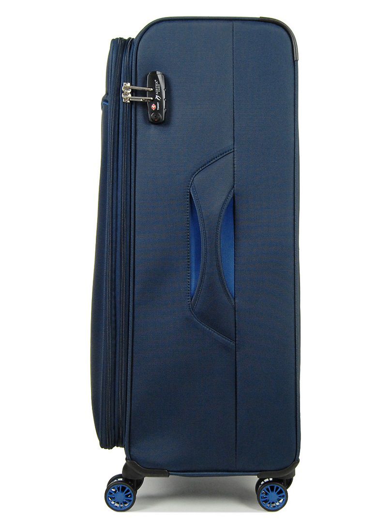 Данный чемодан изготовлен из специально разработанных легких компонентов, благодаря которым уменьшается вес чемодана, что является решением проблемы ограничения веса багажа во время авиаперелетов. Все основные элементы чемодана изготовлены из легких материалов и прочной ткани. Эта модель отличается высокой маневренностью и легкостью в управлении, благодаря четырехколесной системе (четыре колеса из прочного и бесшумного материала, вращающиеся на 360 градусов). В качестве ткани выбрали нейлон, имеющий высокую плотность (800D) и обладающий водоотталкивающими свойствами. Кроме того, этот материал легко очищается от грязи и не подвергается механической деформации. Есть расширение, которое позволит увеличить объем чемодана когда это необходимо. Каркас этого чемодана состоит из гибких полипропиленовых пластин и уплотненного дна, за счет чего, не только прекрасно держит свою форму, но и позволяют сохранять в целости все предметы находящиеся в середине. Одежда может быть аккуратно закреплена на фиксирующих ремнях. Также в середине чемодана размещен большой боковой карман-сетка, извне, для небольших вещей расположен карман в который удобно складывать все, что необходимо в дороге.