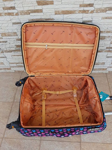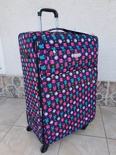Прочный и удобный чемодан с красивой расцветкой в розовых тонах с интересным принтом микки мауса . Материал — полиэстер. Устойчивый к световому и тепловому воздействию. Четыре съемных колеса вращающиеся на 360 градусов, придают маневренности и позволяют катить чемодан рядом с собой,и распределяют нагрузку равномерно. Имеет встроенный кодовый замок с функцией многократной замены кода, который обеспечивает сохранность внутреннего багажа. Выдвижная телескопическая ручка, ручка сверху и ручка сбоку чемодана. Возможность увеличения объема чемодана на 20%. Закрывается чемодан на молнию. Внутри одно отделение, в котором предусмотрены прижимные ремни для фиксации вещей. Внутри на крышке чемодана карман на молнии. Снаружи на передней стенке чемодана два кармана на молнии.