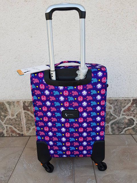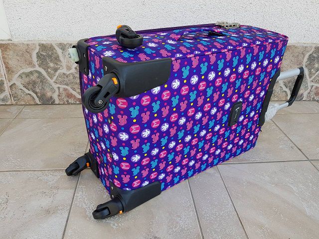 Прочный и удобный чемодан с красивой расцветкой в розовых тонах с интересным принтом микки мауса . Материал — полиэстер. Устойчивый к световому и тепловому воздействию. Четыре съемных колеса вращающиеся на 360 градусов, придают маневренности и позволяют катить чемодан рядом с собой,и распределяют нагрузку равномерно. Имеет встроенный кодовый замок с функцией многократной замены кода, который обеспечивает сохранность внутреннего багажа. Выдвижная телескопическая ручка, ручка сверху и ручка сбоку чемодана. Возможность увеличения объема чемодана на 20%. Закрывается чемодан на молнию. Внутри одно отделение, в котором предусмотрены прижимные ремни для фиксации вещей. Внутри на крышке чемодана карман на молнии. Снаружи на передней стенке чемодана два кармана на молнии.