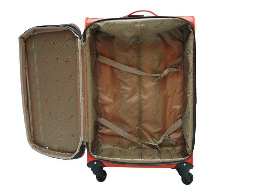 Каркас этого чемодана состоит из гибких полипропиленовых пластин и уплотненного дна, за счет чего, не только прекрасно держит свою форму, но и позволяют сохранять в целости все предметы находящиеся в середине. Одежда может быть аккуратно закреплена на фиксирующих ремнях. Также в середине чемодана размещен большой боковой карман-сетка, извне, для небольших вещей расположен карман в который удобно складывать все, что необходимо в дороге.