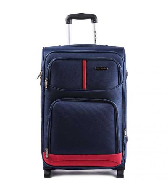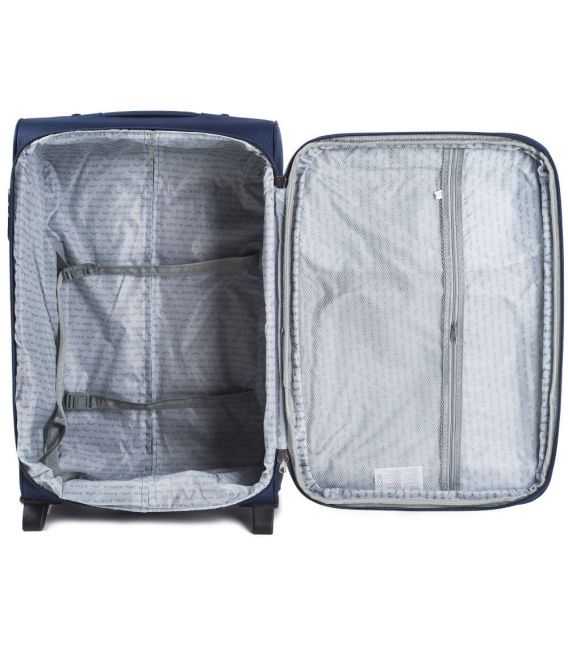 Средний польский дорожный чемодан на двух колесах Wings (Вингс) произведен из надежного и прочного синтетического тканевого материала — полиэстер марки 600D. Этот материал легкий, износостойкий, эластичный, непромокаемый. Металлический каркас придает жесткую форму чемодану – вы можете не бояться его максимально нагрузить.