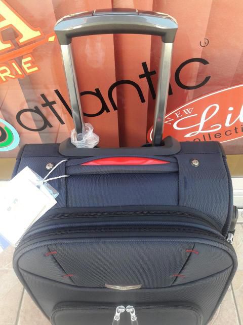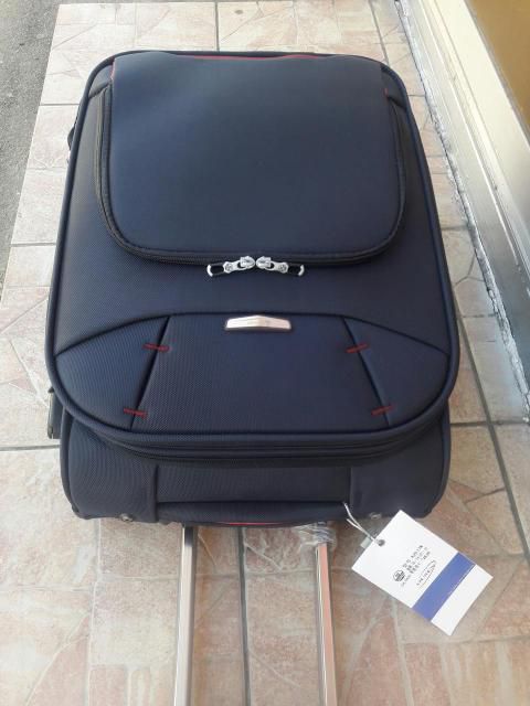 Сверху и сбоку чемодана расположены ручки для переноски его в вертикальном или горизонтальном положениях. Имеется также выдвижная телескопическая ручка на металлической основе с кнопкой для фиксации высоты.