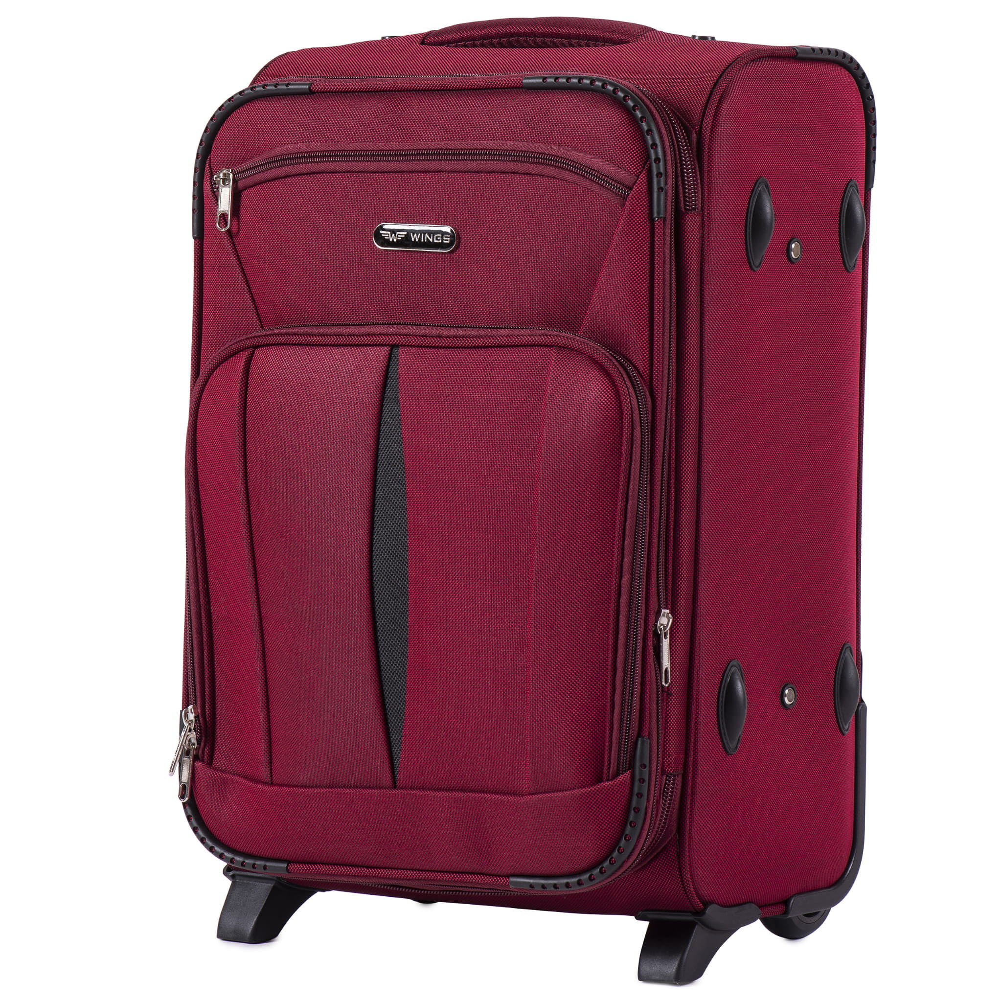 Малый польский дорожный чемодан на двух колесах Wings (Вингс) произведен из надежного и прочного синтетического тканевого материала — полиэстер марки 600D. Этот материал легкий, износостойкий, эластичный, непромокаемый. Металлический каркас придает жесткую форму чемодану – вы можете не бояться его максимально нагрузить.