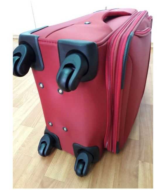 Чемоданы имеют 4 колеса с подшипниками , которые придают маневренности и распределяют нагрузку равномерно. Выполнены они из полиуретана и не издают шума при езде.