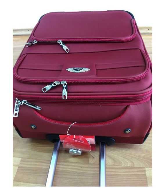 Внутри чемодана имеется 2 отделения, одно с прижимными ремнями, другое закрывается на молнию. А так же карман для мелочей на молнии. Сверху и сбоку чемодана расположены ручки для переноски его в вертикальном или горизонтальном положениях. Имеется также выдвижная телескопическая ручка на металлической основе с кнопкой для фиксации высоты . При необходимости есть возможность увеличения чемодана в объеме. На боковой стороне расположены 4 маленькие ножки для защиты и устойчивости чемодана в горизонтальном положении.