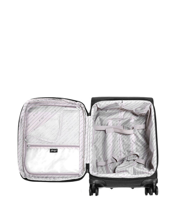 Чемодан Airtex Gemini предлагает наиболее практичную внутреннюю организацию. Он открывается в форме буквы U на два отделения на подкладке: самое глубокое имеет регулируемые фиксирующие ремни, которые предотвращают раскручивание и сминание одежды. Туда же можно разместить туалетные принадлежности и пару обуви. Плоское отделение, расположенное под крышкой, закрывается гибкой панелью на молнии, стенки которой частично выполнены из сетки, поэтому содержимое сразу видно. Карман с пластиковыми стенками, расположенный в этом лотке-сепараторе, можно использовать для изоляции флаконов с жидкостью. Мелкие аксессуары надежно спрятаны в сетчатом кармане. Три больших передних кармана (с обратной молнией, защищающей от влаги) позволяют держать под рукой транспортные документы и что-нибудь, что сделает путешествие более приятным: например, журнал, маску и дорожную подушку. Небольшой боковой карман на молнии, соединенный кабелем с портом USB A, расположенный в верхней части чемодана, предназначен для размещения внешнего аккумулятора (не входит в комплект) для подзарядки ваших электронных устройств, где бы вы ни находились.