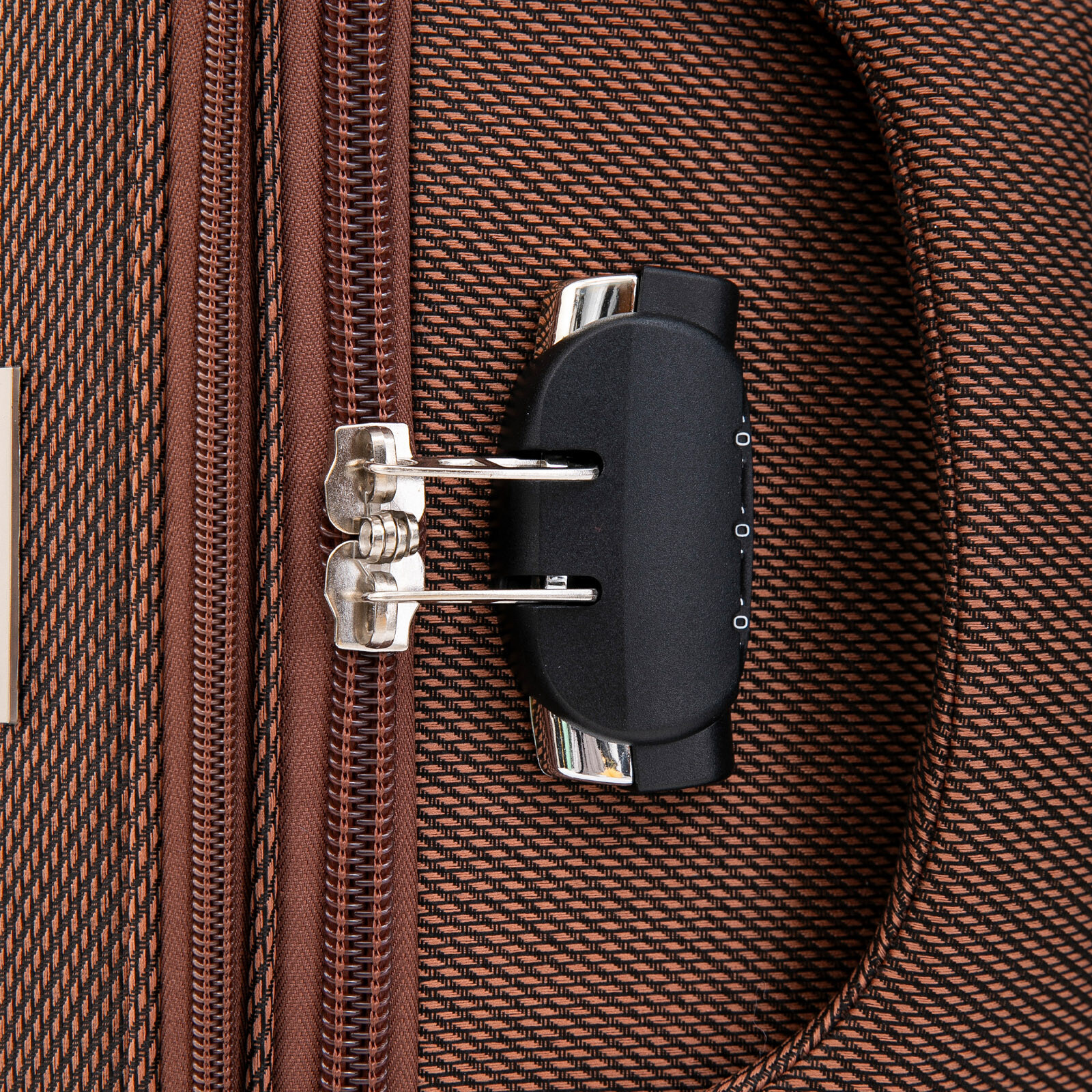 Чемодан Semi Line 28 Brown T5960-3 имеет следующие особенности: расширительный клапан, кодовый замок, внешние карманы, четыре полноповоротных колеса и широкую мягкую ручку в верхней и боковой части чемодана, что делает чемодан достаточно функциональным и удобным в использовании. Расширительный клапан, при необходимости, позволяет увеличить объем чемодана с 99 литров до 109 литров, и удобно упаковать вещи, чтобы всегда было достаточно места. Пластиковый каркас задней стенки и стальной профиль по периметру позволяют чемодану держать форму даже не заполненному до конца. Телескопическая ручка фиксируется в двух положениях.