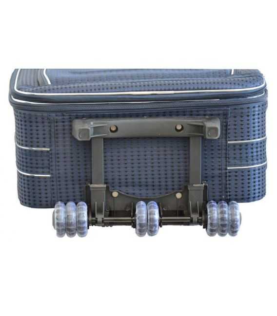 Чемодан сделан из материала типа Codura, водонепроницаемый, прочный и долговечный материал устойчив к ударам или давлению. Жесткие стенки и дно придают ему стабильную внутренность, где без проблем вы можете перевозить свой багаж. Чемодан идеально подходит для авиаперелетов, где багаж особенно уязвимым к повреждениям. Каркас, прочный и легкий. Шасси из 5 каучуковых колес. Чемодан имеет выдвижную ручку с компасом.