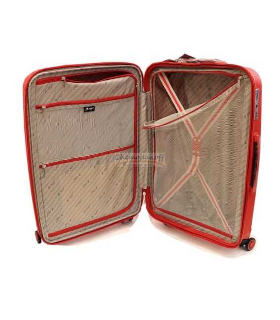 - Чемодан закрывается на водотталкивающую молнию, внутри предусмотрены прижимные ремни для багажа в одном отделении, второе закрывается текстильной крышкой на молнии.