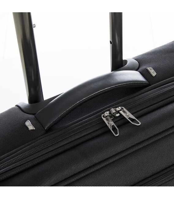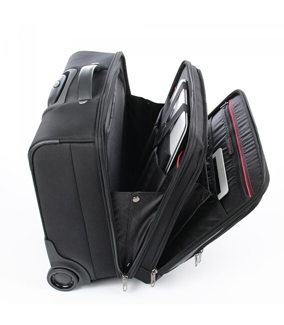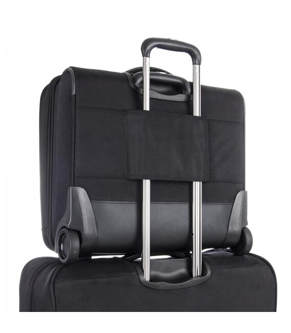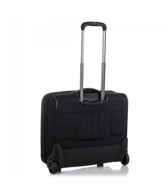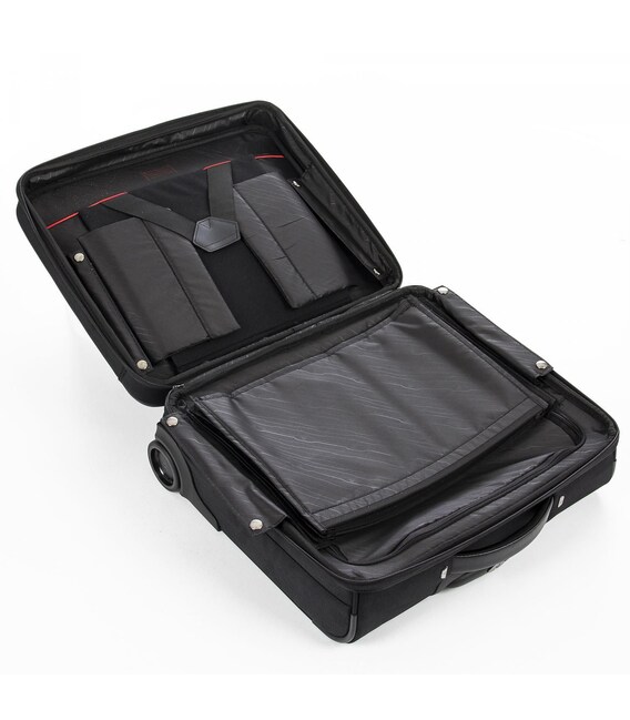 Кейс-пилот из коллекции BIZ 2.0 выполнен из нейлона с полиэстером - надежного и прочного материала, устойчивого к влаге и выгоранию. Аксессуар оснащен двумя колесами и широкой ножкой для устойчивости. Для удобства перемещения есть телескопическая ручка и текстильная подъемная ручка. На фронтальной поверхности расположен карман на молнии со сдерживающими углами, в котором обустроен мини-офис, где можно расположить письменные принадлежности, банковские карты, телефон. В кейс-пилоте предусмотрено место для ноутбука с диагональю до 17" и планшета с диагональю 10". Также в основном отделении есть прижимные ремни для багажа, а благодаря небольшому весу и размеру аксессуара, его можно взять на борт самолета как ручную кладь. На задней поверхности кейс-пилота есть текстильная планка, которая позволит Вам закрепить изделие на телескопической ручке чемодана.