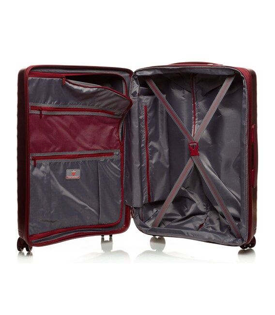 - Отлично подобранная цветовая гамма внешне и внутри чемодана.