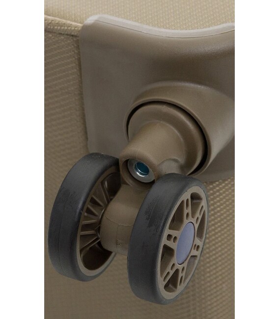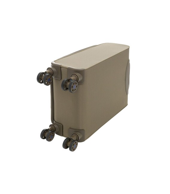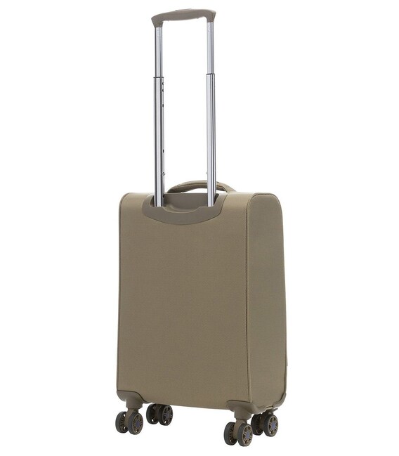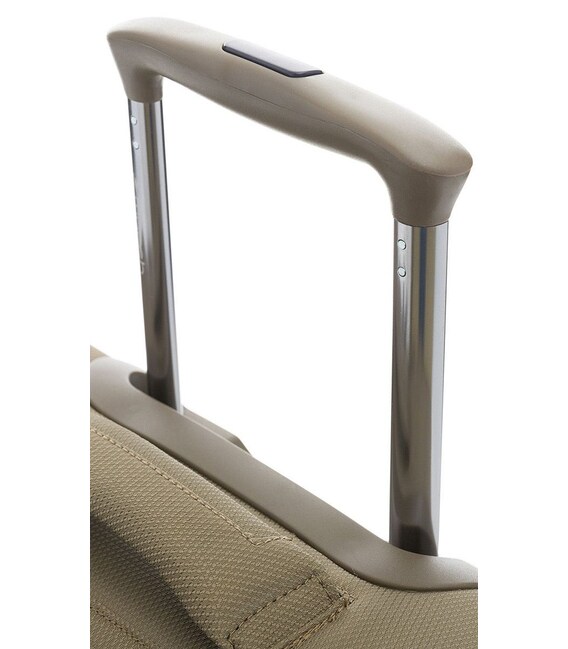 Маленький чемодан оснащен четырьмя спаренными маневренными колесами, вращающимися на 360̊. Для удобства перемещения есть удобная телескопическая ручка, и подъемные текстильные ручки на верхней и боковой поверхности. Чемодан обладает легким весом, можно взять на борт самолета.