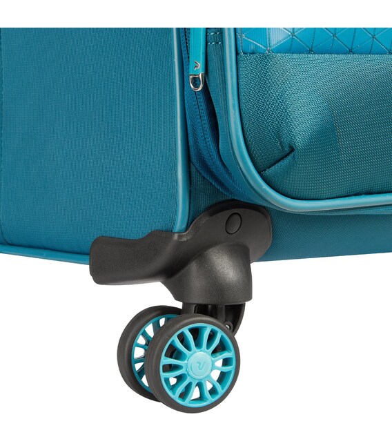 Средний чемодан подходит для путешествий на продолжительное время. Выполнен из комбинированных тканей полиэстера/нейлон плотностью 600D, что позволяет чемодану быть износостойким и водоотталкивающим. Оснащен вместительным основным отделением с прижимными ремнями, также глубоким наружным карманом. Для удобства перемещения чемодан имеет 4 спаренных колеса, вращающихся на 360 градусов, регулируемой телескопической ручкой и мягкими ручками для переноски на верхней части и боковой части чемодана.