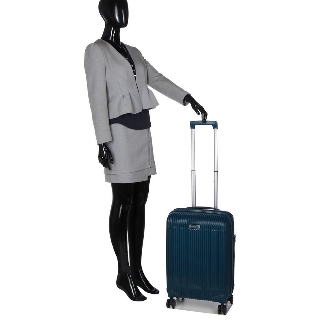 • Чемодан оснащен телескопической ручкой с кнопкой регулировки высоты, также есть ручки на боковой и верхней поверхности, выполненные из пластика, для удобства переноски.
