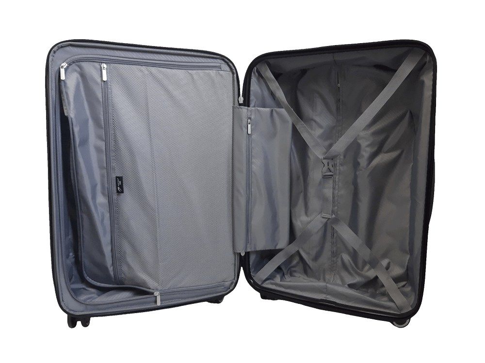 • Чемодан закрывается на водотталкивающую молнию, внутри предусмотрены прижимные ремни для багажа в одном отделении, второе закрывается текстильной крышкой на молнии.