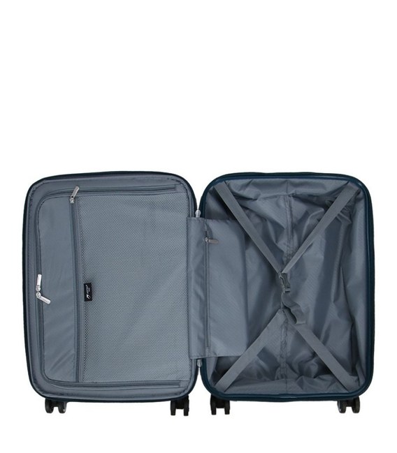 - Чемодан закрывается на водотталкивающую молнию, внутри предусмотрены прижимные ремни для багажа в одном отделении, второе закрывается текстильной крышкой на молнии.