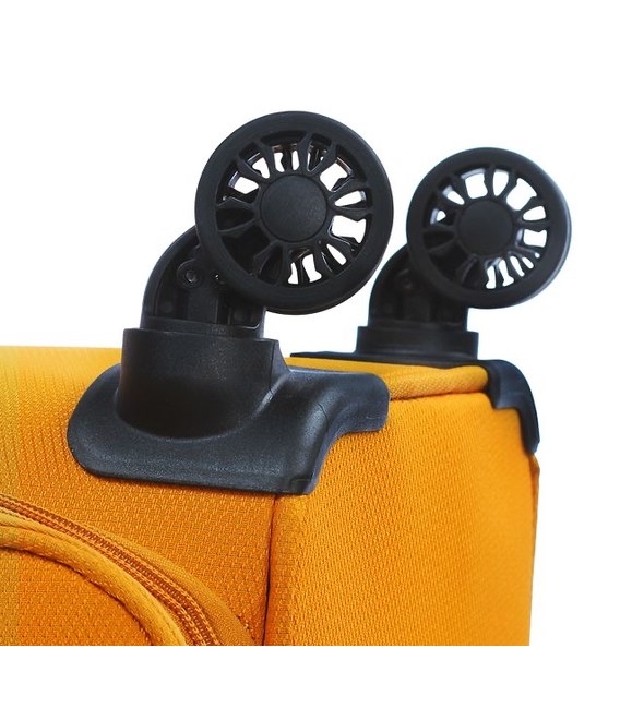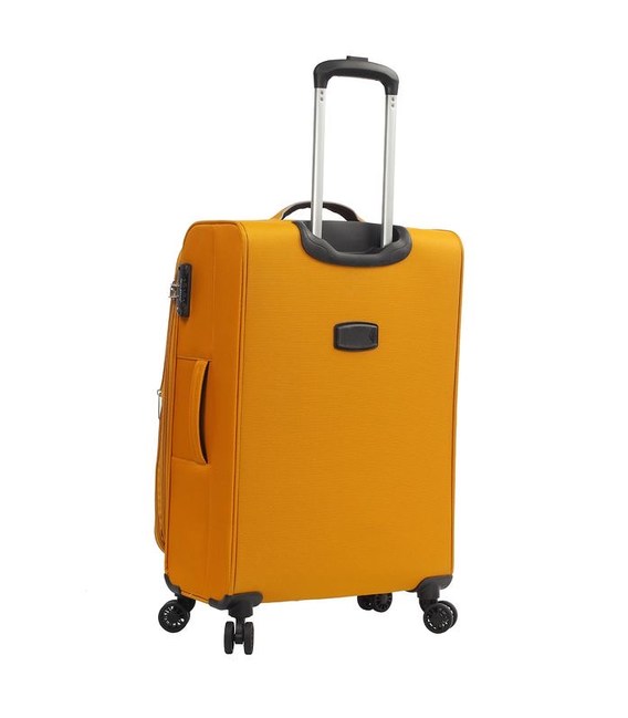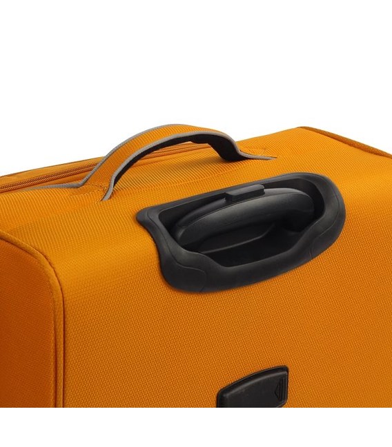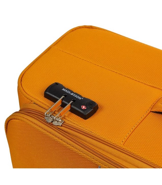 Дорожный текстильный чемодан от французского производителя Madisson. Материал корпуса выполнен из нейлона плотностью 900D. Ткань эластичная, а также обладает водоотталкивающими свойствами. Внутри 2 лотка, допиленных множеством карманов и сеточек для удобства организации собранных вещей. Чемоданы комплекта в размерах M-L имеют молнию расширитель. Чемодан оборудован TSA-замком, что упрощает процедуру таможенного досмотра. Шасси состоит из 4 независимых колес, из полиуретана, колеса вращаются на 360 градусов, что обеспечивает лучшую маневренность. Внутри чемодана имеется 2 отделения, одно с прижимными ремнями, другое закрывается на молнию. Сверху и сбоку чемодана расположены ручки для переноски его в вертикальном или горизонтальном положениях. Выдвижная телескопическая ручка на металлической основе с кнопкой для фиксации высоты.