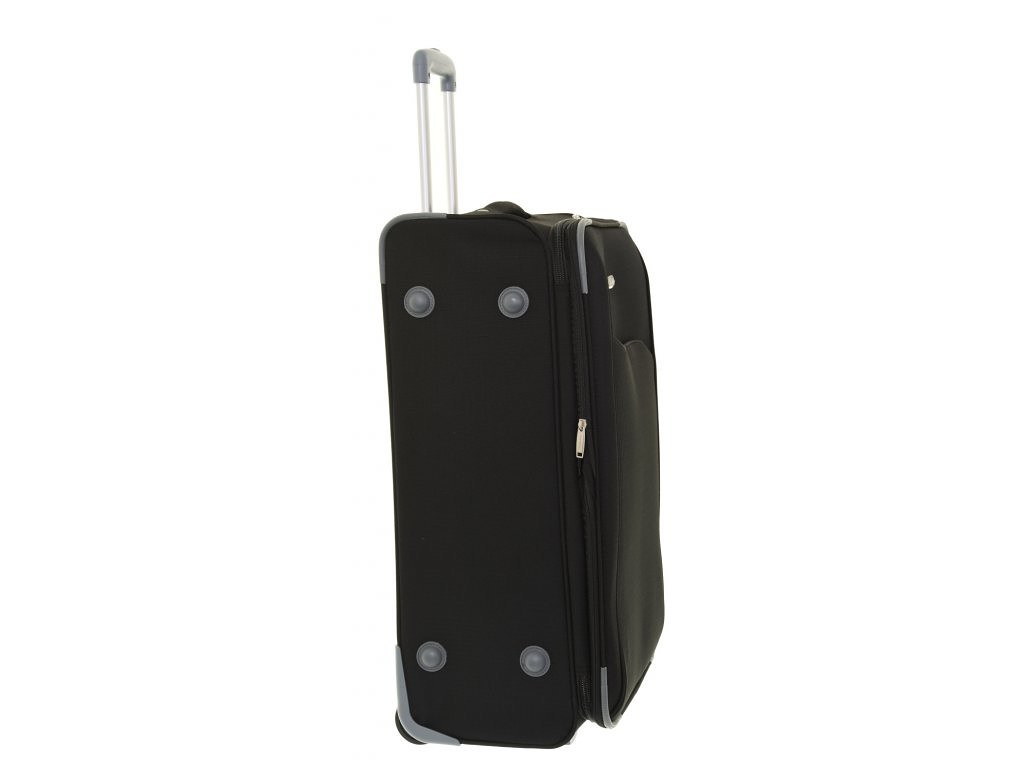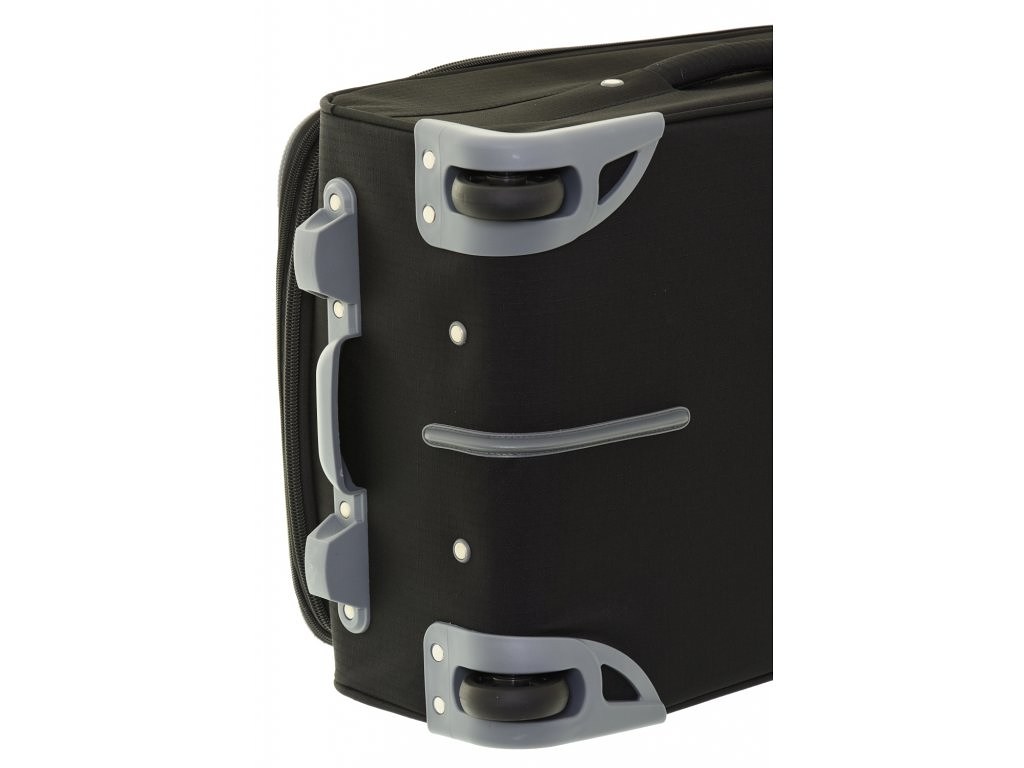 Дорожный текстильный чемодан от французского производителя Madisson. Материал корпуса выполнен из полиэстера плотностью 900D. Ткань эластичная, а также обладает водоотталкивающими свойствами. Внутри 2 лотка, допиленных множеством карманов и сеточек для удобства организации собранных вещей. Чемоданы комплекта в размерах M-L имеют молнию расширитель. Внутри чемодана имеется 2 отделения, одно с прижимными ремнями, другое закрывается на молнию. Сверху и сбоку чемодана расположены ручки для переноски его в вертикальном или горизонтальном положениях. Выдвижная телескопическая ручка на металлической основе с кнопкой для фиксации высоты.