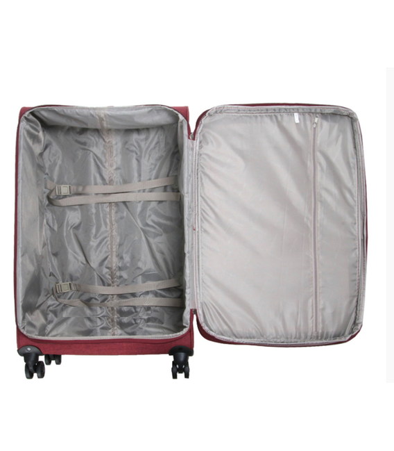 На передней панели чемодана есть карман для мелочей и документов. Сверху и сбоку чемодана расположены ручки для переноски в вертикальном или горизонтальном положениях. На боковой стороне чемодана маленькие ножки для защиты и устойчивости чемоданы в горизонтальном положении.