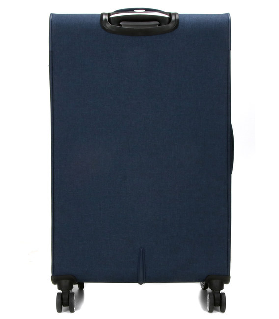 Чемодан Snowball Jean 79 см выделяется красивым полиэфирным покрытием модного джинсового цвета. Его большая вместимость 100 л позволяет разместить все полезные вещи при проживании более 3 недель. Он также оснащен основным замком TSA, позволяющим, в частности, без проблем пересекать таможню США.