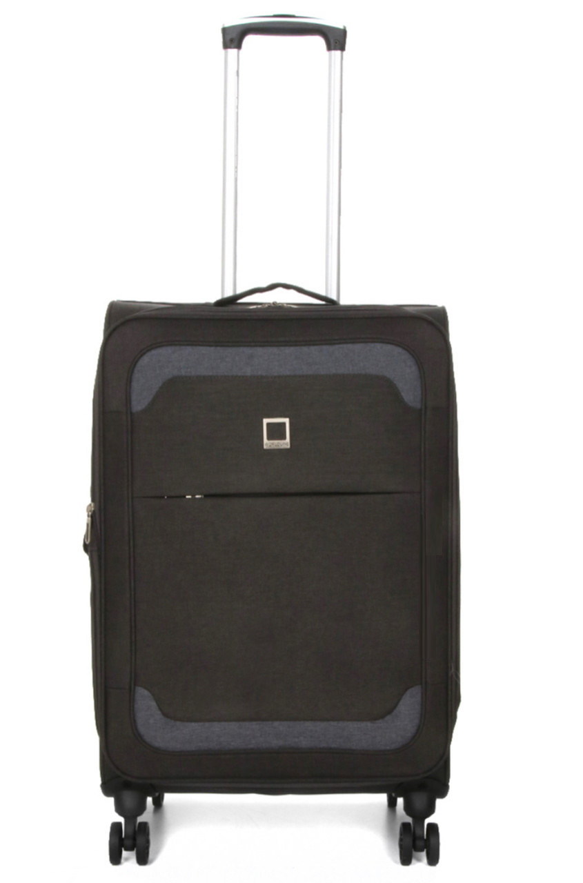 На передней панели чемодана есть карман для мелочей и документов. Сверху и сбоку чемодана расположены ручки для переноски в вертикальном или горизонтальном положениях. На боковой стороне чемодана маленькие ножки для защиты и устойчивости чемоданы в горизонтальном положении.