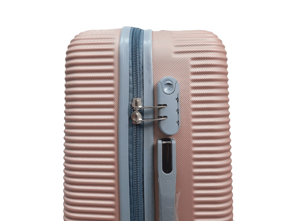 Легкая модель изготовлена из ABS-пластика. Чемодан имеет шероховатую поверхность, на которой практически не видно царапин. Модель оснащена выдвижной ручкой, кодовым замком и четырьмя колесами, вращающимися на 360 градусов. Внутри есть два отдела, которые разделяются перегородкой на молнии.
