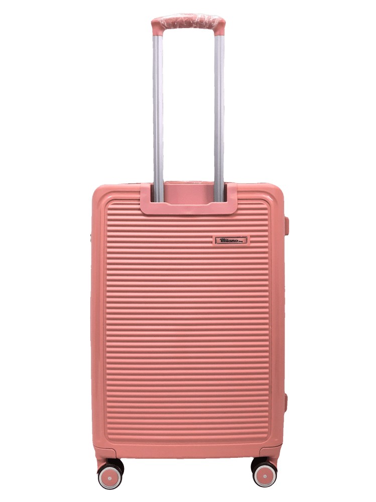 Чемоданы Milano модель 024 Страна производителя – Египет. Материал чемодана 100% полипропилен - устойчив к ударам и царапинам. Особенностью данной модели является фурнитура в цвет чемодана. Колеса полиуретановые двойные прорезиненные на вращающихся подшипниках на 360 градусов. В каждом размере находится боковой TSA кодовый замок. И дополнительное расширение