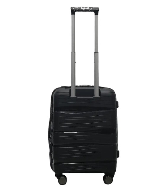 - Чемодан оснащен телескопической ручкой с кнопкой регулировки высоты, также есть ручки на боковой и верхней поверхности, выполненные из пластика, для удобства переноски.