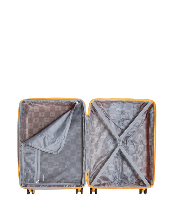 Усі валізи Snowball Valparaiso на 4 колесах мають 2 відділення з підкладкою, гнучку перегородку на блискавці та 2 еластичні ремінці. Тут знайдуть своє місце запасний одяг, пари взуття, куртки чи будь-які інші речі, необхідні для безперебійного перебування. Для книжки біля ліжка або модних аксесуарів ви можете обрати велику внутрішню сітчасту кишеню на блискавці.